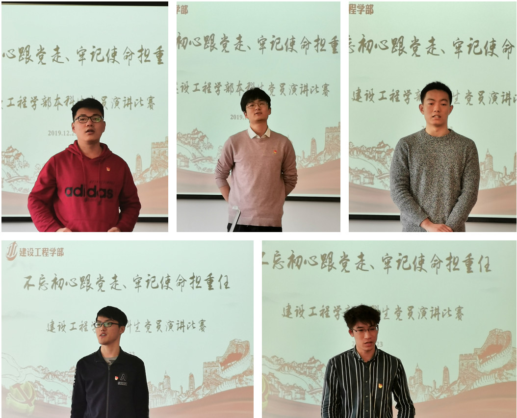 为深入贯彻落实大连理工大学《不忘初心、牢记使命主题教育方案》,教育引导学生党员牢固树立“四个意识”,坚定“四个自信”,充分发挥学生党员的先锋模范作用,建设工程学部于12月23日在党员活动室举行“不忘初心跟党走、牢记使命担重任”本科生党员演讲比赛。学部党委副书记兼副部长李英敏教授,党委副书记兼副部长、纪委书记王晶华老师,学部组织员、师生纵向党支部书记、全体辅导员以及学生党员代表担任本次比赛评委。