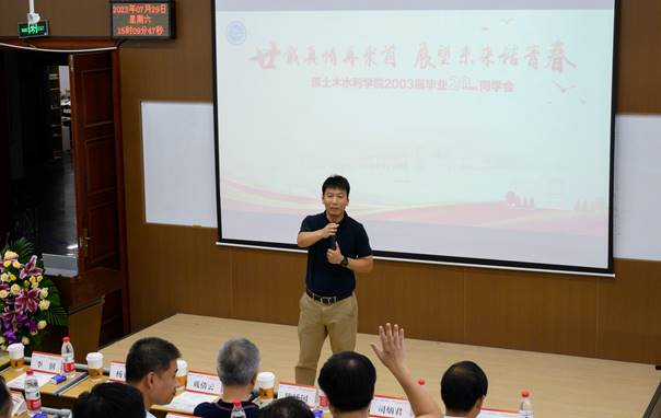 2023年7月29日,大雨如约而至,但这并未影响原土木水利学院2003届毕业生们的返校热情,80余名校友也如约准时出席了返校20周年的聚会活动。建设工程学部向来重视校友工作,大连理工大学国内合作与联络处处长杨克旭,建设工程学部部长李钢,建设工程学部党委副书记、副部长郭景晨,以及教师代表宋向群、陈廷国、刘亚坤、檀永刚、潘宝峰、黄丽华、李静等参加了返校大会,并与毕业生面对面深入交流,共话学校学部未来发展。