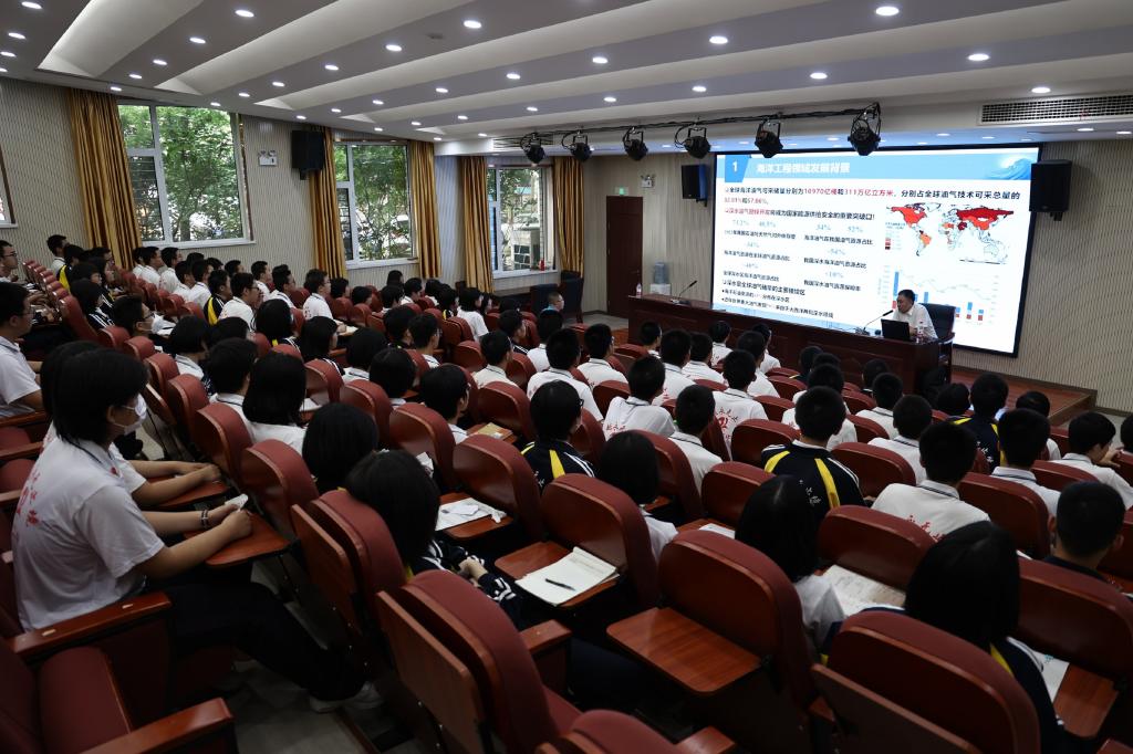 随后,于龙书记为百余名衡水高中学子们带来“海洋工程机遇与挑战”大工讲堂,从海洋工程的发展背景开题,介绍了海洋空间开发、海洋资源保护与利用等方面的相关知识,从学生们感兴趣的角度,以问答的形式为学生们答疑解惑。