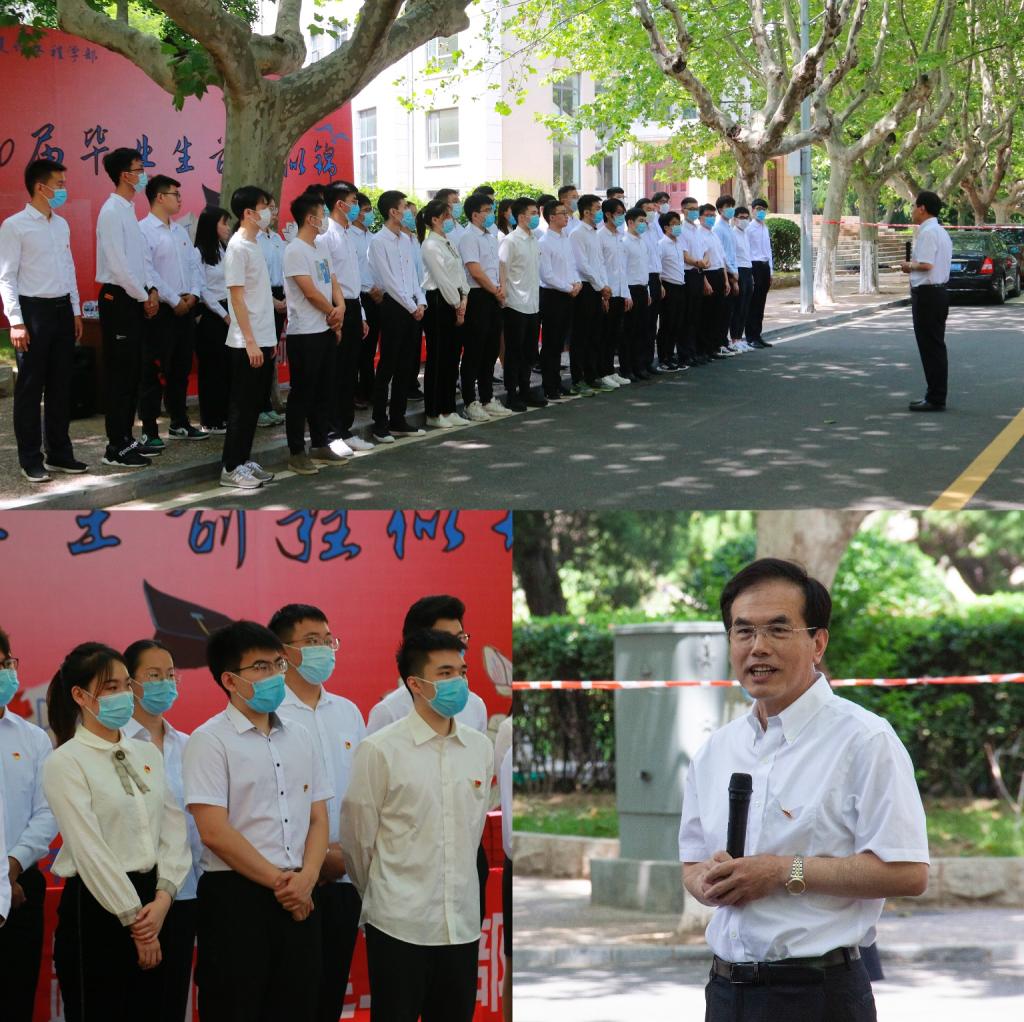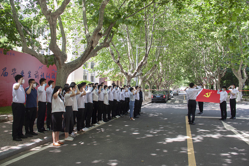 最后,全体人员在校优秀学生党员标兵施勃帆带领下重温入党誓词,毕业生党员们面对党旗,再次庄严宣誓:对党忠诚、积极工作,为共产主义奋斗终身,随时准备为党和人民牺牲一切,永不叛党。