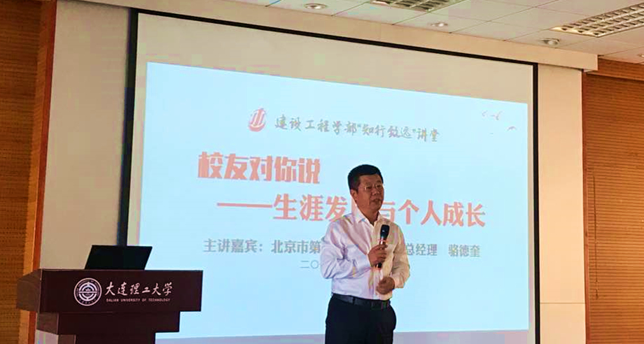 “大连理工大学是工程师的摇篮,大家要依据国家政策走向,规划好人生的不同阶段性目标,将大工精神发扬光大。”这是骆德奎校友在建设工程学部“知行致远”讲堂上对同学们的谆谆教诲。