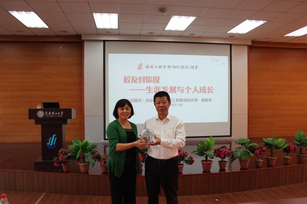 讲堂结束后,建设工程学部党委副书记兼副部长李英敏老师为骆德奎校友颁发建设工程学部“知行致远”讲堂纪念牌。