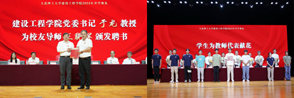 典礼上,于龙书记为校友导师王晓辉颁发聘书。王晓辉校友回顾了在建工的求学之路,勉励同学们树立远大志向,坚持知行合一,注重团队合作。