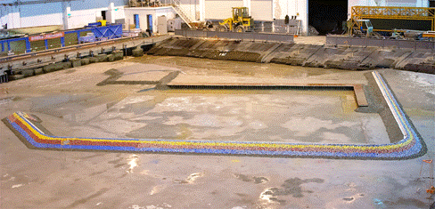 与我国有宽广大陆架和岛链的掩护不同,秘鲁的大陆架狭窄并且直面开阔大洋,长期遭受太平洋强劲的中长周期波的侵袭。中长周期波下防波堤护面块体的稳定性、越浪量等的计算已超出规范公式的适用范围,给钱凯港的设计带来了极大挑战。同时,中长周期波下的海上施工作业也是国际上公认的难题,钱凯港项目沉桩作业、堤心石抛填、扭王字块安装等操作十分困难,施工窗口期短,施工风险高,项目施工推进举步维艰。