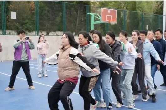 在同心鼓比赛中,学院教师们分工明确、默契配合、稳定发挥,实现连续颠球数十次,展现了团结协作的团队精神。
