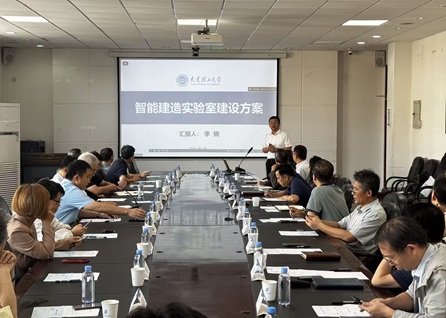 李钢院长作智能建造实验室建设方案汇报。他表示,建设智能建造实验室是学院、学科转型发展的关键一环,智能建造专班前期充分调研了国内代表性院校的智能建造实验室情况和我校智能建造专业建设需求,基于调研情况,提出了一套通用技术实验区、专业技术实验区和应用场景区域相结合的建设方案。智能建造实验室的建设离不开学院各研究所和教师的鼎力支持,借此次研讨会契机,希望各位专家就智能建造实验室建设多提宝贵意见。