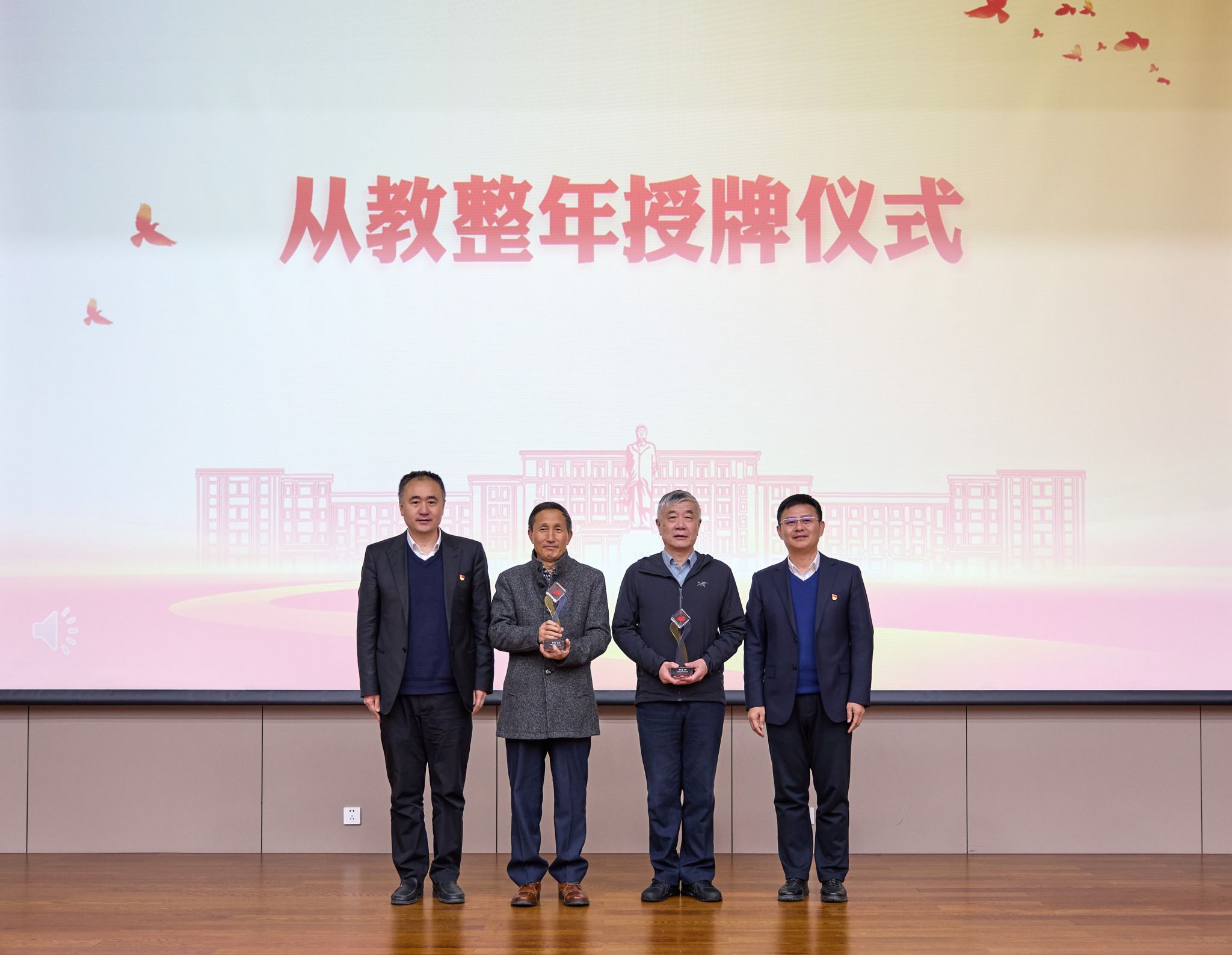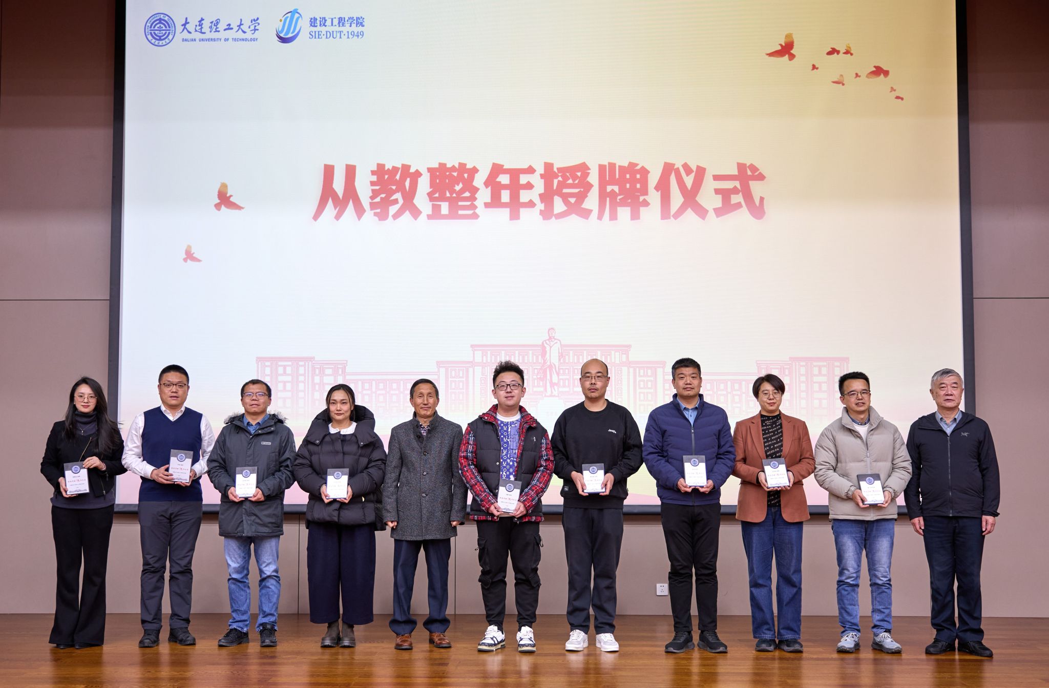 本次大会特别设置了“从教周年纪念授牌仪式”,向长期坚守教育一线、为学院发展作出突出贡献的教师致以崇高敬意。学院领导为从教40周年的教师颁发纪念牌,再由从教40周年的前辈教师为从教10年的青年教师授牌。通过这一庄重而温暖的仪式,表达学院对教育初心的传承、对教师奉献精神的礼赞,生动展现了建工学院薪火相传、接续奋斗的育人精神。