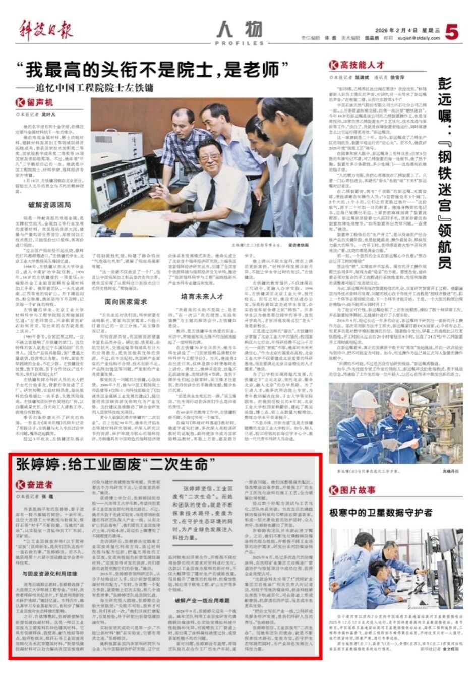 近日,学院张婷婷教授团队深耕工业固废高值化利用领域,破解产业一线应用难题的故事,登上《科技日报》。