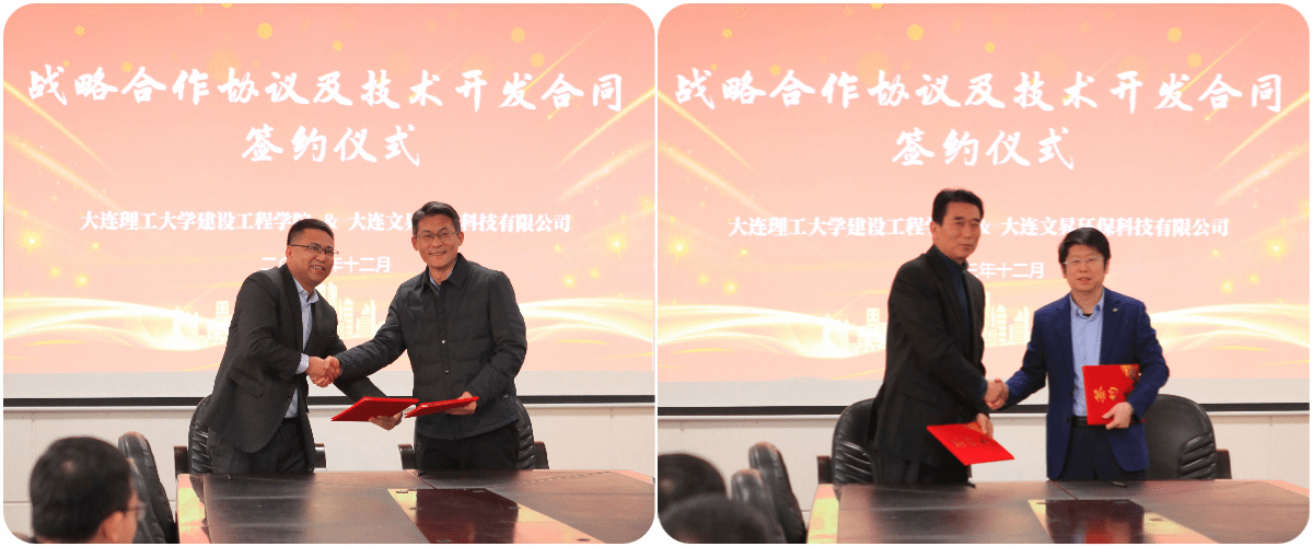 2023年12月29日,建设工程学院与大连文昇环保科技有限公司在厚兴楼307会议室举行了战略合作协议及技术开发合同签约仪式。