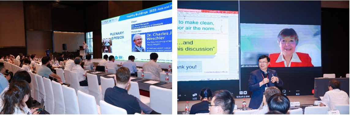 本次会议特邀8位世界顶级科学家做主旨报告,分别是澳大利亚科学院院士、昆士兰科技大学Lidia Morawska教授,室内环境领域顶刊Indoor Air前任主编、加州大学伯克利分校William W. Nazaroff教授,新泽西州立罗格斯大学Charles J. Weschler教授,丹麦技术大学Pawel Wargocki教授,科罗拉多大学博尔德分校Zhiqiang (John) Zhai教授,香港大学李玉国教授,及清华大学朱颖心教授和张寅平教授。8位资深专家,分别针对污染物暴露、空气质量控制、疫情时期通风、环境低碳营造等领域的发展趋势与面临瓶颈,进行了深度剖析与震撼发声。报告高屋建瓴,反响强烈。