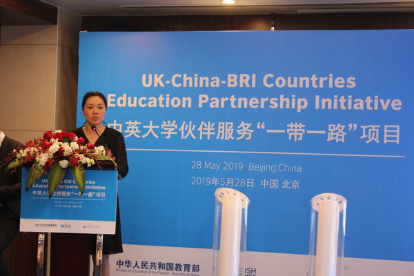 5月28日,由教育部与英国文化教育协会联合发起的中英大学伙伴服务“一带一路”项目在北京正式启动。教育部国际交流与合作司副司长张晋、英国文化教育协会中国区主任兼英国大使馆文化教育公使艾琳出席启动会并致词。