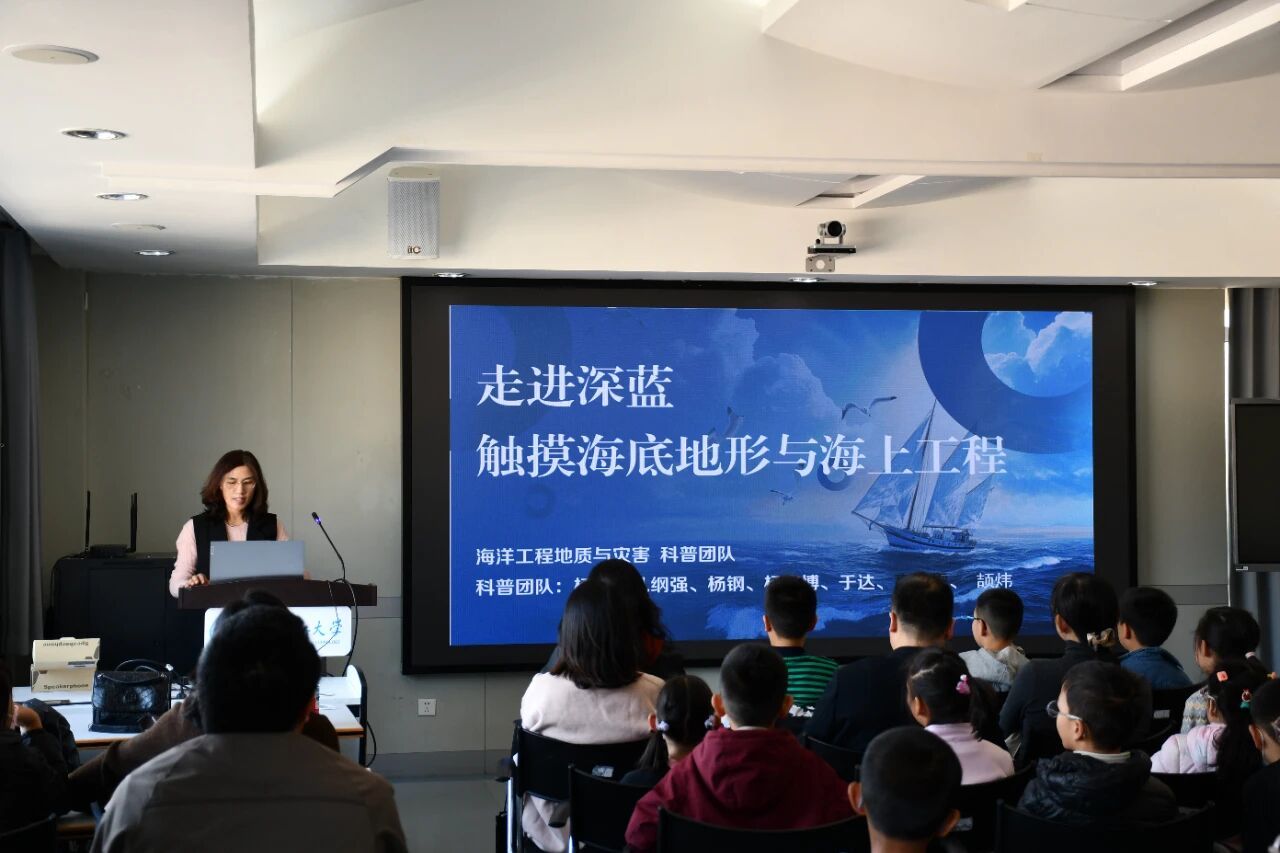 在专家讲堂环节,辽宁省教学名师、大连民族大学高凌霞教授作了题为《走进深蓝——触摸海底地形与海洋工程》的科普报告。她凭借丰富的教学与科普经验,将复杂的海底地形知识,以及港珠澳大桥、海洋钻采平台等重大工程案例,转化为生动的影像和趣味故事,深入浅出地引导小朋友们领略海洋工程地质的奥秘。