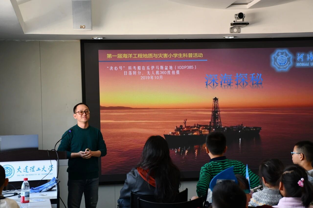 11月22日,由中国岩石力学与工程学会科普工作委员会、海洋工程地质灾害防控分会主办,大连理工大学、海岸与海洋工程全国重点实验室承办,杨庆教授领衔的“海洋工程地质与灾害”科普团队具体组织实施的第一届海洋工程地质与灾害小学生科普活动在大连举办。本次科普活动以“鹿灵探海记”为主题,活动包括专家讲堂、互动科学实验与海岸与海洋工程全国重点实验室参观三部分,为期一天的科普活动为60余名小学生及家长开启了一场海洋科学探索之旅。