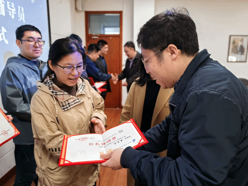 活动伊始,王一部长和于龙书记首先为选聘为青年教师兼职辅导员颁发聘书并合影留念。在会议交流环节,青年教师代表夏英杰谈到,感谢学院信任给予此次机会,将利用自身特长全力配合辅导员工作并介绍自身研究所科研育人的具体措施,同时表达了对未来思政教育工作的坚定信心。