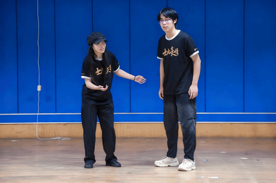 进入9月中旬,团队开启“多幕衔接+场景协作”的进阶模式,演员们也从“形似”向“神似”突破,通过反复打磨站位与互动细节,让不同角色的观点碰撞更具画面感。同时,舞台剧插入了全新的舞蹈设计,邀请专业舞蹈导演根据剧本内容设计舞蹈动作,开启舞蹈动作排练。